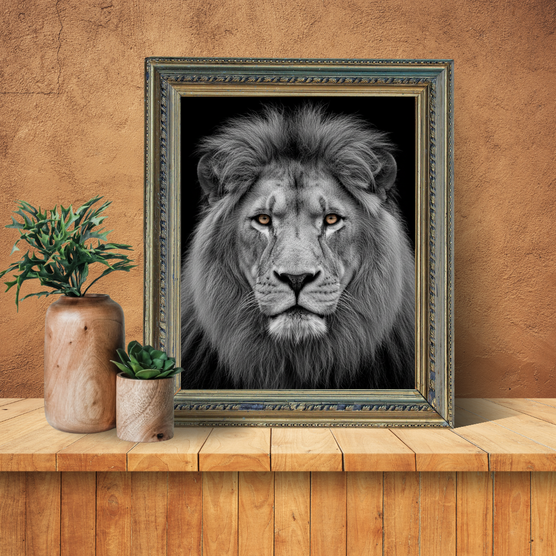 The Apex of Art: Capture the Raw Power of the African Savanna Lion in Digital Detail. Our stunning African Lion art is the perfect digital statement piece. Capture the Raw Power of  The Lion in Digital Detail and Add the Majesty of the African Savanna to Your Decor.